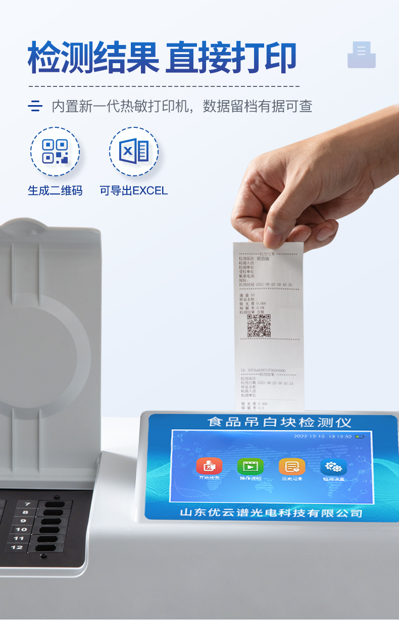 4、 配備嵌入式熱敏打印機(jī),可選擇手動(dòng)打印或者自動(dòng)打印,三分鐘出打印結(jié)果。