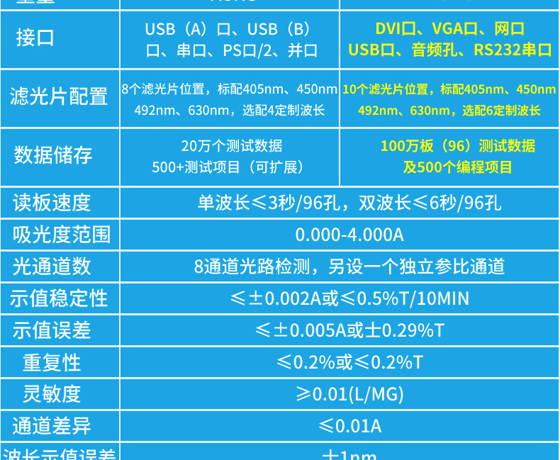 *濾光片配置:10個濾光片位置,標(biāo)配405nm、450nm、492nm、630nm,選配6定制波長