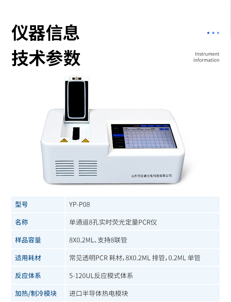 YP-P08型非洲豬瘟快速檢測(cè)儀主要用于運(yùn)行實(shí)時(shí)熒光定量PCR實(shí)驗(yàn),通過熒光激發(fā)和采集的方式,對(duì)實(shí)驗(yàn)過程進(jìn)行實(shí)時(shí)監(jiān)控,將實(shí)驗(yàn)過程數(shù)據(jù)繪制成熒光曲線,實(shí)時(shí)呈現(xiàn)于儀器顯示界面,并對(duì)實(shí)驗(yàn)數(shù)據(jù)進(jìn)行擬合和分析,最后可生成PDF格式的實(shí)驗(yàn)報(bào)告。