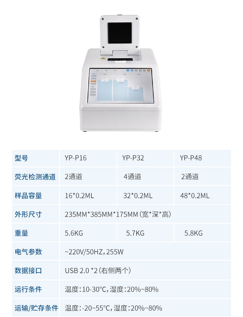 YP-P32型號(hào)非洲豬瘟檢測(cè)設(shè)備主要用于運(yùn)行實(shí)時(shí)熒光定量PCR實(shí)驗(yàn),通過熒光激發(fā)和采集的方式,對(duì)實(shí)驗(yàn)過程進(jìn)行實(shí)時(shí)監(jiān)控,將實(shí)驗(yàn)過程數(shù)據(jù)繪制成熒光曲線,實(shí)時(shí)呈現(xiàn)于儀器顯示界面,并對(duì)實(shí)驗(yàn)數(shù)據(jù)進(jìn)行擬合和分析,最后可生成PDF格式的實(shí)驗(yàn)報(bào)告。