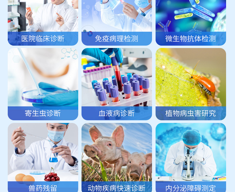 6. 在同一板上可進行多至12個不同項目的測試,并可同一板檢測定性和定量項目。