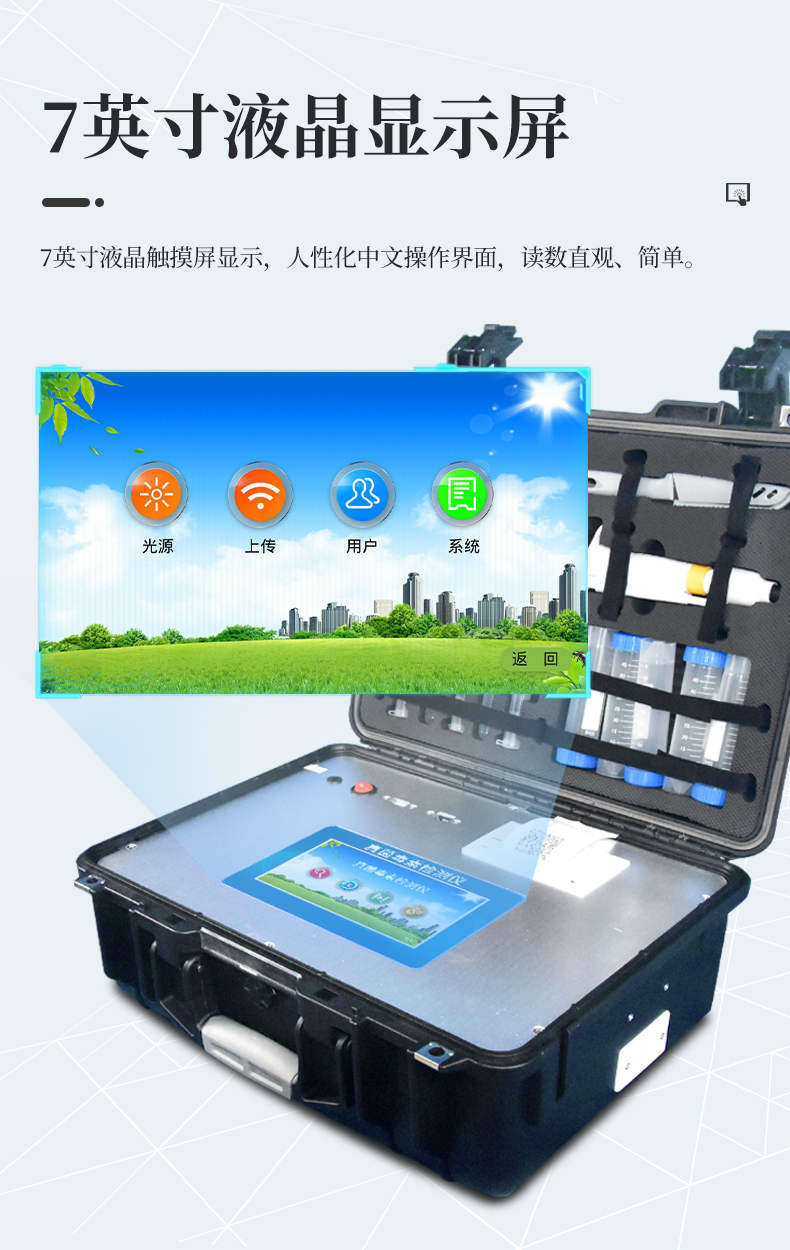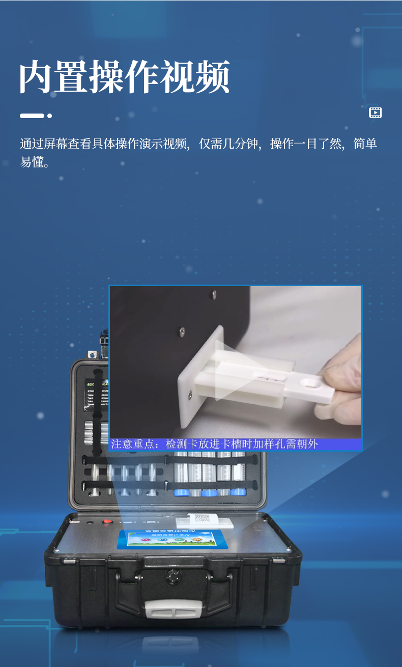 1、一體化便攜式快檢設(shè)備,機(jī)箱采用工業(yè)級(jí)ABS工程塑料箱,方便攜帶,穩(wěn)固耐用,滿足現(xiàn)場(chǎng)及流動(dòng)檢測(cè)使用需求。