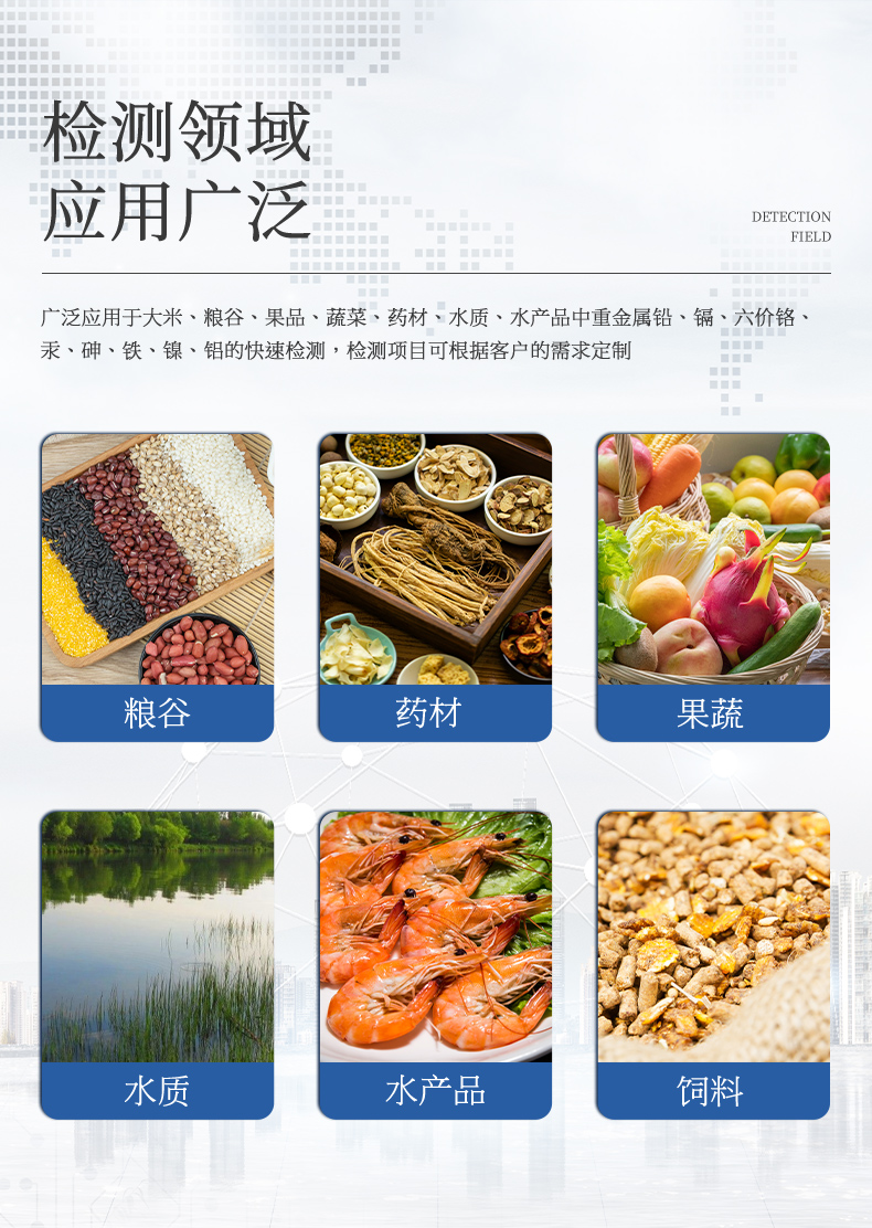 YP-TZ08重金屬檢測(cè)儀可廣泛應(yīng)用于大米、糧谷、果品、蔬菜、藥材、水質(zhì)、水產(chǎn)品中重金屬鉛、鎘、六價(jià)鉻、汞、砷、鐵、鎳、鋁的快速檢測(cè),檢測(cè)項(xiàng)目可根據(jù)客戶(hù)的需求定制。