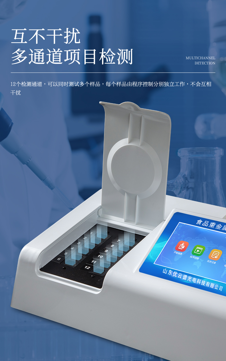 8、檢測(cè)通道:12個(gè)檢測(cè)通道,可以同時(shí)測(cè)試多個(gè)樣品,每個(gè)樣品由程序控制分別獨(dú)立工作,不會(huì)互相干擾。