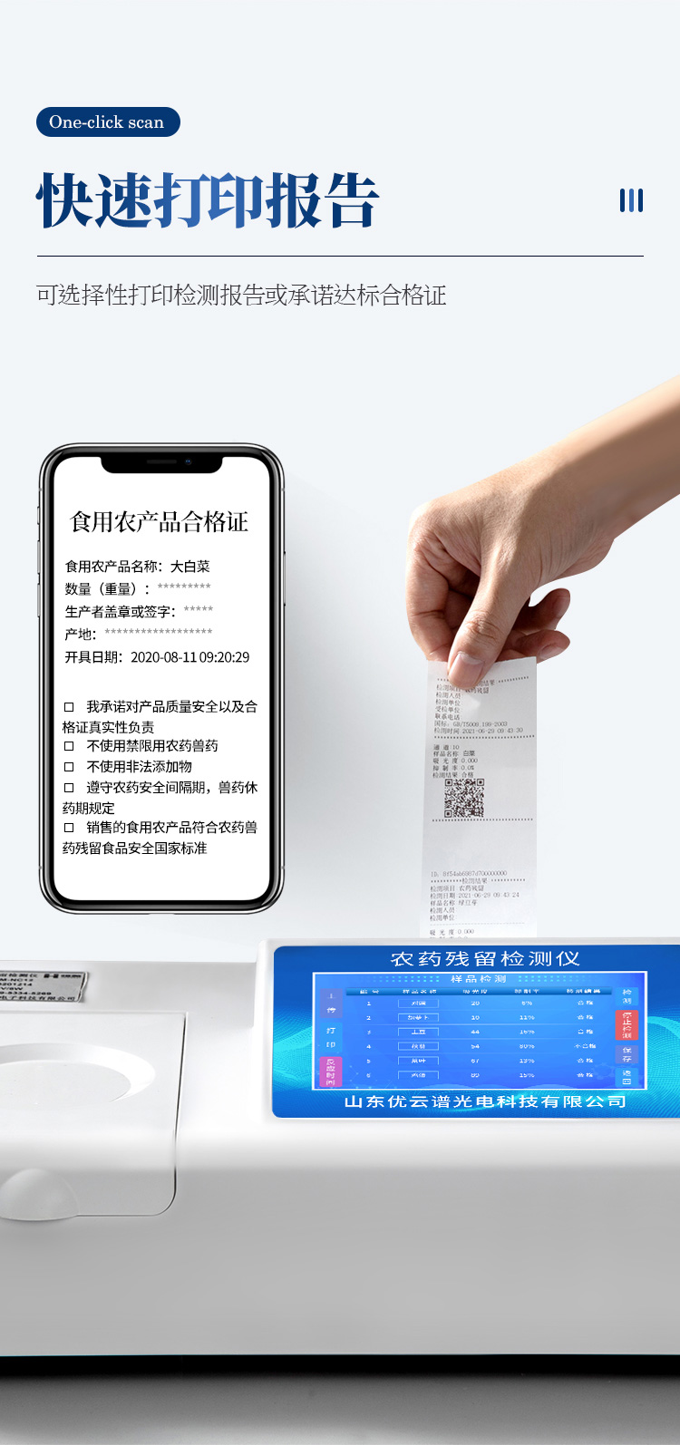 8、新一代高速打印機(jī),可同時(shí)打印二維碼,打印格式為檢測(cè)人姓名、吸光度差值、檢測(cè)時(shí)間、檢測(cè)機(jī)構(gòu)、樣品名稱及結(jié)果判定。