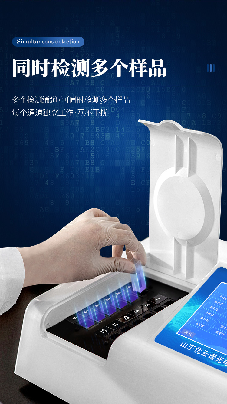 6、檢測(cè)通道:8個(gè)檢測(cè)通道,可以同時(shí)測(cè)試多個(gè)樣品,循環(huán)檢測(cè),即放即檢,每個(gè)樣品由程序控制分別獨(dú)立工作,不會(huì)互相干擾。