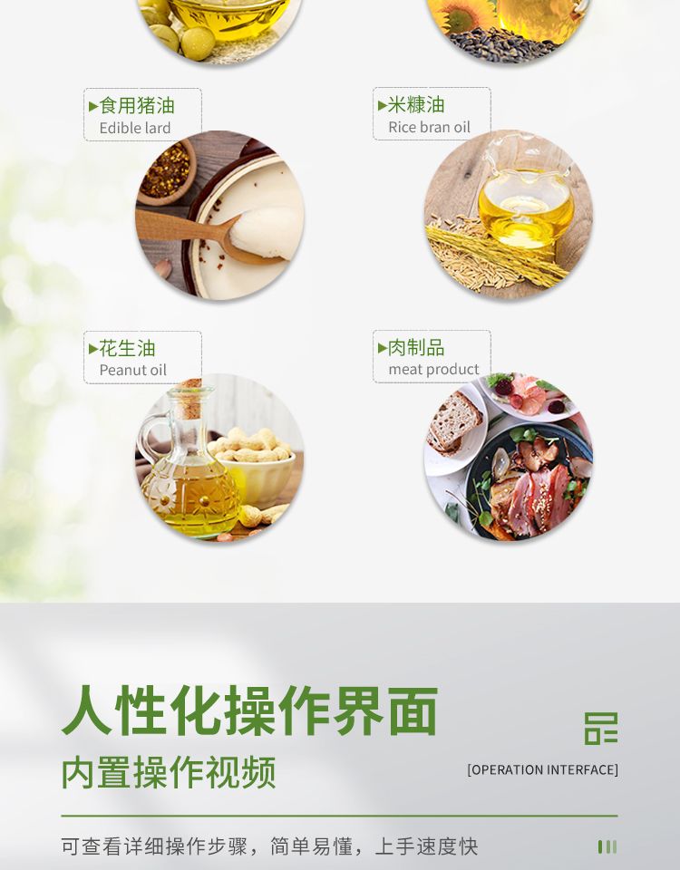 廣泛應(yīng)用于質(zhì)量監(jiān)督檢驗(yàn)、工商管理、油炸食品生產(chǎn)基地、食藥監(jiān)局、衛(wèi)生部門、肉制品食品深加工企業(yè)、商場超市、各大食品安全監(jiān)測系統(tǒng)等單位使用。